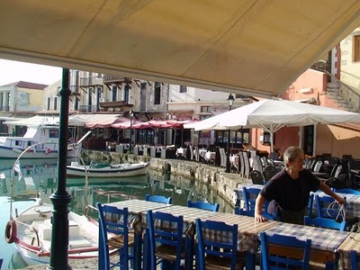 Nota sobre costume grego 1: à medida que os dias passam, tenho vindo a reparar num costume muito próprio de Creta. Nos restaurantes quase não há oferta de sobremesa. Limitam-se a uns gelados e pronto. Primeiro estranhei, depois percebi porque era. Quando acabamos de comer, seja almoço ou jantar e pedimos a conta, eles trazem-na e, depois disso, o empregado ou o proprietário da casa trazem a sobremesa como oferta para mesa. É claro que não podemos escolher, mas é muito interessante reparar que eles fazem questão de trazer a conta para já não poderem alterá-la e assim evidenciarem que estão a fazer uma oferta. É mesmo uma atenção. Já nos ofereceram uma meloa descascada e partida, uma travessa com melancia, um gelado para cada um, um prato de figos e “Raki”que é uma aguardente tipicamente cretense que é suposto beber-se de “penalti” e cuja particularidade é não arder na garganta. Estes tipos não existem.