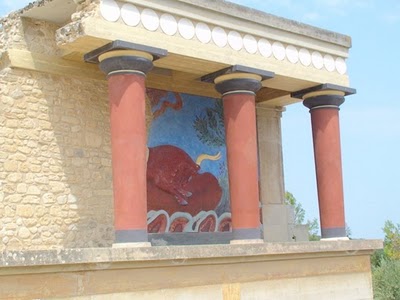 Saímos de manhã e visitámos as ruínas de Cnossos que ascendem à cultura minoica. Qualquer coisa como 70 séculos antes de Cristo. As ruínas, ou seja, as suas edificações e frescos, foram “completados”, isto é, reconstruídos por John Evans com uma técnica de restauro que tem sido polémica. O “completamento” é coerente e feito por analogia com o que ele encontrou, mas na verdade depende da interpretação que ele deu ao que encontrou. Um turista comum nem nota e gosta de ver as coisas “acabadas”. Um visitante mais atento não deixa de reparar que há coisas que não são originais. Em todo o caso, a visita vale a pena. É uma cidade imponente para a época a que reporta.