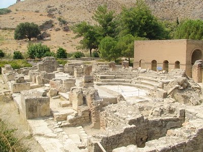 Depois fomos às ruínas de Gortina que são excepcionais, não só porque têm um salão de música romano e uma extensa parede onde estavam gravadas publicamente as leis da terra para que ninguém pudesse invocar desconhecimeto, como têm também algo que me maravilhou: uma basílica cristã, construída nos finais do império romano, em solo grego! É do Séc. V D.C. Talvez seja a basílica cristã mais antiga que visitei até hoje porque não se trata da adaptação de um templo romano mas de uma basílica construída de raiz.
