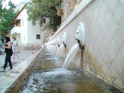 Nota atrasada 1 (22:15h): No regresso a casa, presenciámos algo pouco comum. Ao entrarmos numa pequena localidade chamada Spili, havia sinais de trânsito a sugerir que fizéssemos um desvio. Se quiséssemos ir pela vila, teríamos de ir a 20km/h e dar sempre prioridade aos peões. Resolvemos ir pela vila. É uma terrinha simpática e pequenina e a principal rua é a estrada nacional que a atravessa ao meio. Os responsáveis locais, espécie de Junta de Freguesia, não estiveram com meias medidas, pavimentaram a estrada nacional como se fosse um passeio e quem tem prioridade são os peões! Há imenso comércio, sobretudo as típicas tavernas, os restaurantes, e casas de rendas e bordados. A vila está na base de uma montanha e por isso tem imensa água, é conhecida pela sua fonte que são 25 bicas de água em forma de cabeça de leão que jorram continuamente com abundância.