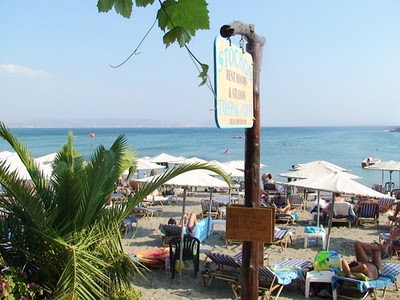 Em Creta, as coisas pordem acontecer assim. Um dia dedicado à cultura tem fim numa esplanada de praia. Estamos na esplanada da Taverna Stochos na praia de Agia Gallini, na costa sul da ilha. Acabámos de comer um tzatziki e uns calamares e agora vamos ao banho no mar para refrescar antes de fazer a viagem de regresso a Georgioupoli. O mar é, como em toda a ilha, intensamente azul e morno na temperatura.