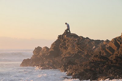 [No passado dia 3 de Outubro, a minha família resolveu oferecer-me como prenda de anos um fim-de-semana na praia. Assim para relaxar. Escrevi por lá umas coisitas incluindo o texto que transcrevo abaixo e que decidira não publicar porque me faltavam imagens apropriadas e porque gostava pouco dele… Sei lá, coisas de gente tonta. Acontece que os cunhadinhos, Luís e Sandra, acabaram de me oferecer um powerpoint do fim-de-semana onde estão algumas fotos que, a meu ver, caem que nem ginginhas no texto. Vai daí, enchi-me de coragem e passei-o do manuscrito para aqui… Pois então divirtam-se. PS: um obrigado sentido à Paula, ao Iago, à Sandra, ao Luís, ao rochedo, ao mar e à saladinha de polvo!]