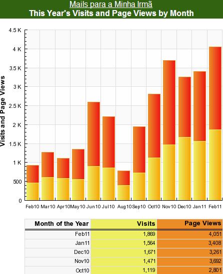 Hoje parece que é dia de falar de números. São 2 da manhã do dia 28 de Fevereiro e, mesmo sendo um mês mais curto do que os outros, já é o melhor de sempre em termos da frequência de Mails para a minha Irmã!!