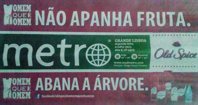 Pois, amigos, esta não tem nada disso. É só preconceituosa e sexista, mas, verdade, verdadinha, captou a minha atenção. Trata-se da campanha que a Old Spice colocou estes dias no jornal “metro” intitulada “HOMEM QUE É HOMEM”