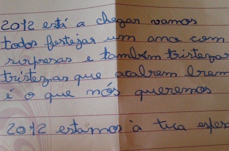 Ontem, uma criança de 9 anos entregou-me com os olhos a brilhar de felicidade e ternura os votos de ano novo que ela própria tinha redigido. E vai-se a ver, está ali a sabedoria toda da Vida e do Universo.