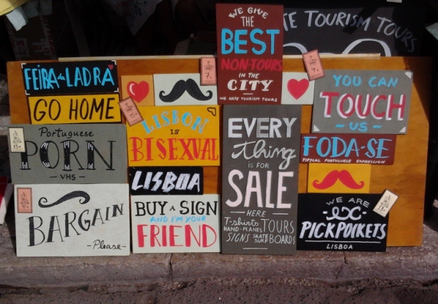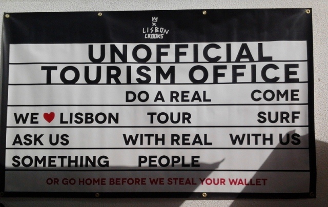 “Posto de Turismo Não Oficial” e construir uma série de cartazes e sinais com conselhos, indicações e informações tão duvidosas quanto engraçadas. Sorri. E como costumo partilhar aquilo que me deixa bem disposto, aqui fica para os amigos leitores. Atenção que o segundo cartaz é só para adultos… é que tem algum vernáculo…