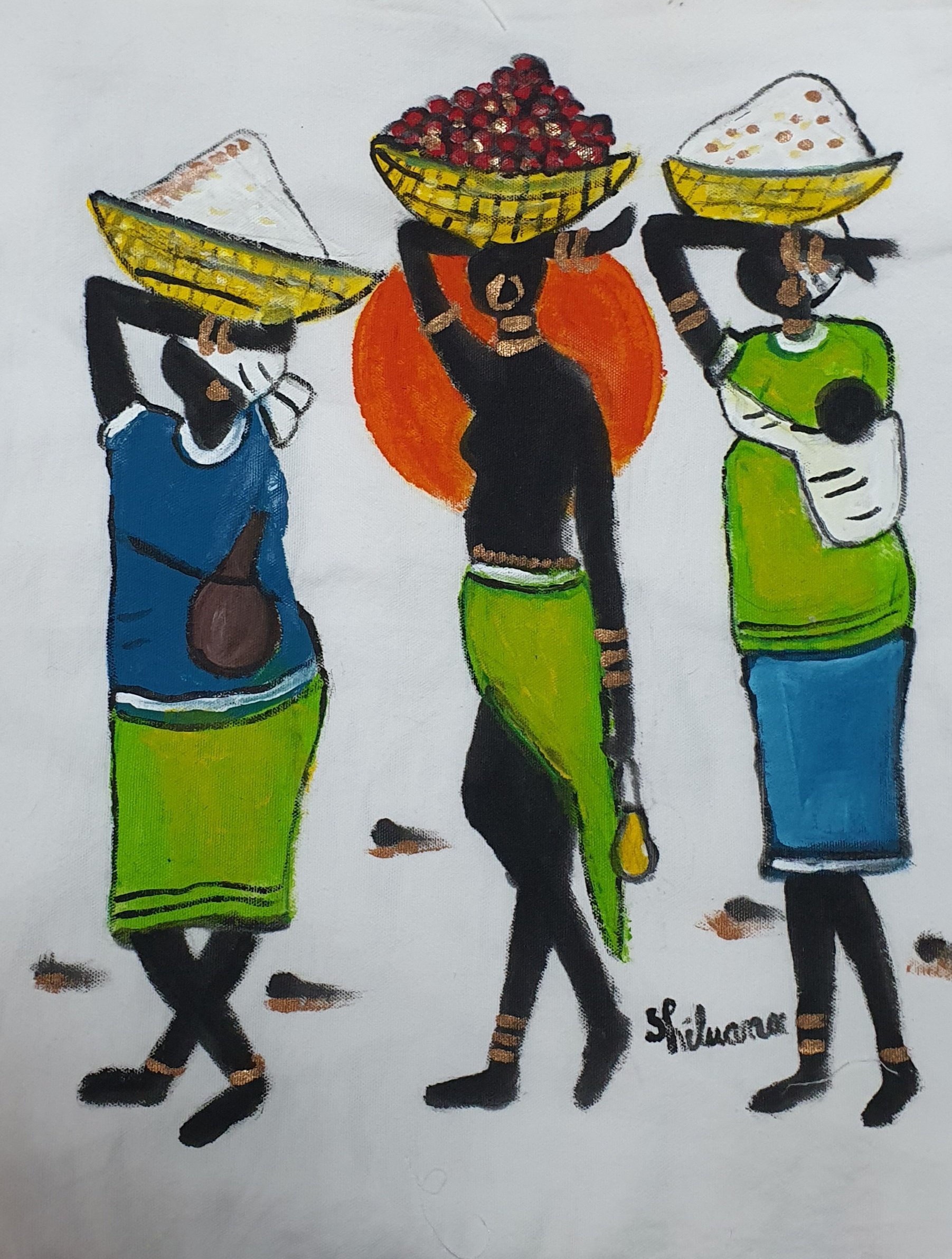 Shiluana faz arte de muitas formas. Pinta loiças, barro, faz bolos decorativos, pinta sobre tela e agora também pinta sacos de linho.