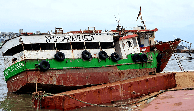 Encostado a outro batel perdido.