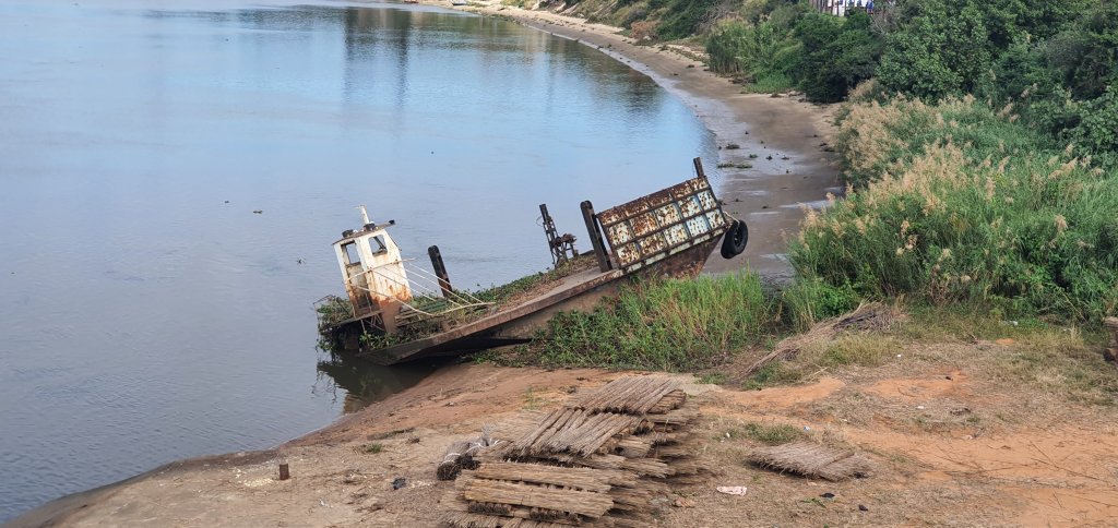 A foto foi tirada junto à ponte da Macaneta e representa o velhinho batelão que tantas vezes atravessou tantos de nós para lá e para cá. Pessoas, bens, animais, automóveis, oito de cada a vez… tudo, tudo. Quem nunca esteve uma hora à espera dele? Quem nunca ficou preso no meio do rio com o batelão avariado ou sem combustível? E depois, lá aparecia alguém do nada e sem se saber como, com um pedaço de tubo, um arame, um jerricã com combustível… Tudo tão precário e tudo tão bom! Este batelão não devia apodrecer ali, o seu lugar é num museu. Um museu de histórias!