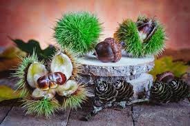 É um centro próprio do Outono, mas cria um efeito surpresa insuperável se apresentado no Verão. Chegada a altura, não se esqueça, cruas, cozidas ou assadas, coma as castanhas! Afinal de contas, era o que imperava na alimentação mediterrânica antes do arrivismo inoportuno da batata.