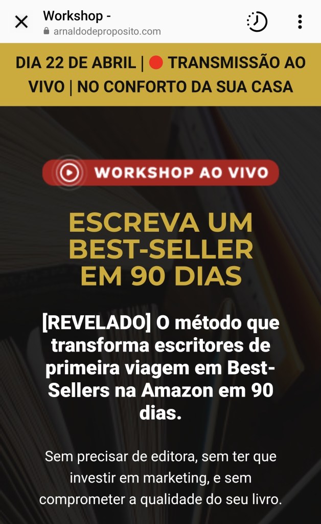 A imagem 3 é uma captação do site http://www.arnaldodeproposito.com onde se publicita um workshop sobre escrita. Neste caso, o workshop será para, em 90 dias, transformar um escritor inexperiente num escritor Best-Seller. É a mesma proposta que consta da imagem 1.