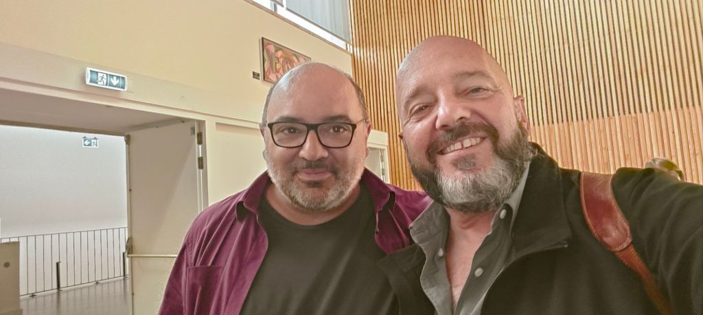 Ainda, estava a tirar partido da presença agradável de Natália, quando conheci Fabrício Cordeiro. Hoje é o dia Internacional da Música, e, homenagem singela, mas significativa, trouxe-se à escola um compositor e intérprete de piano para tocar e espicaçar os miúdos a tocar também. A música é natural, sai-lhe das mãos com a nitidez com que queremos e a harmonia casa muito bem com os nossos ouvidos.