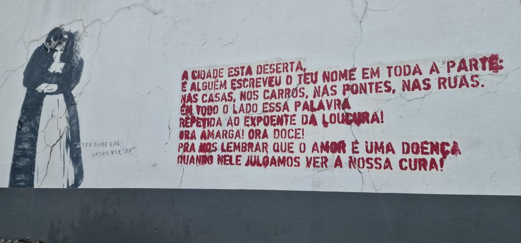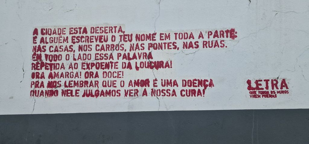 Tem um texto belo, tão belo, que só por um feliz acaso acabou numa parede. Ou, tinha de ser assim, caso contrário perder-se-ia para sempre a liberdade de estar numa parede…