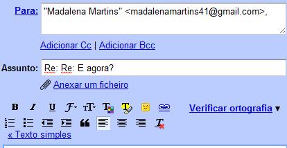 Meu amor, como tantas vezes te disse, eu quero essas coisas todas contigo, mas quero que aconteçam e as façamos acontecer no quotidiano. Não quero viver a vida como quem descarrega itens numa lista de supermercado. Por favor, não me interpretes mal. Esta semana estaremos juntos e conversaremos sobre isto. Entende este mail só como uma contribuição para a nossa reflexão. Nada mais.
