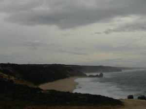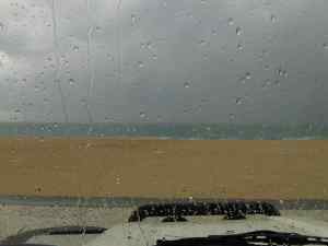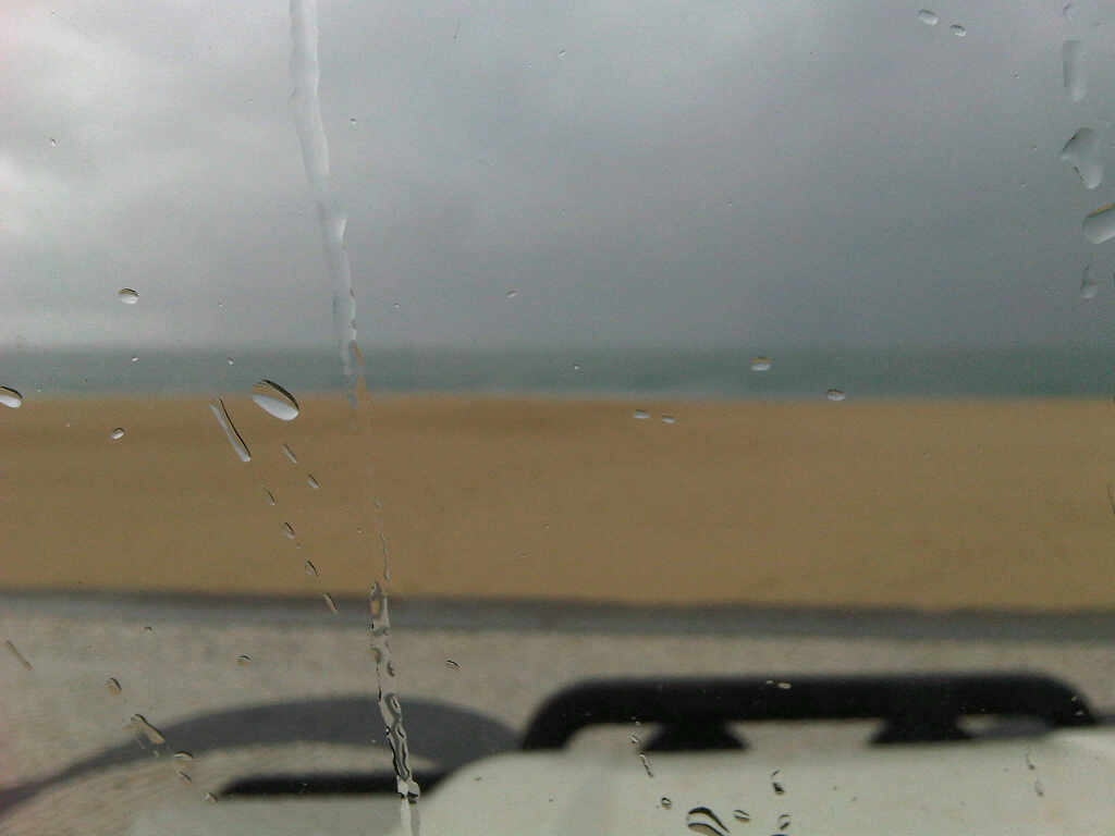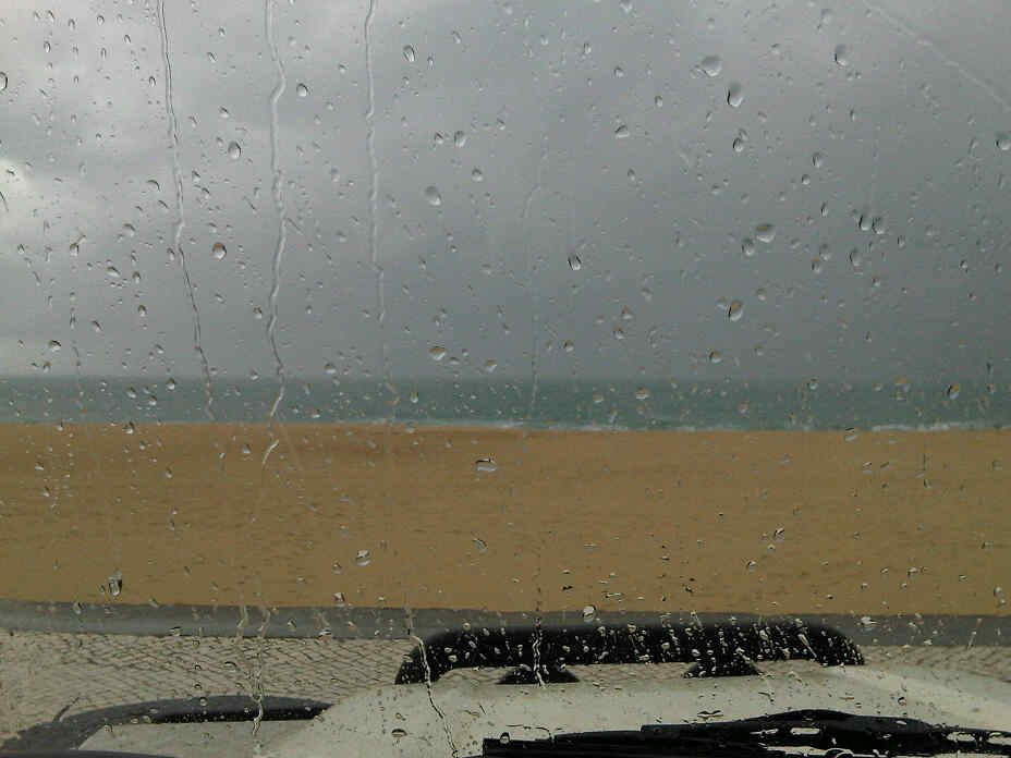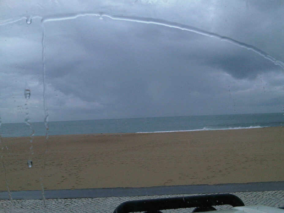 Para quem possa ter saudades do mar azul, ou para quem goste dele com chuva. Fotos de telemóvel a partir do interior do meu escritório móvel (“Defender” forever!). O próximo capítulo de “De Negro Vestida” está pronto. Falta só passar.