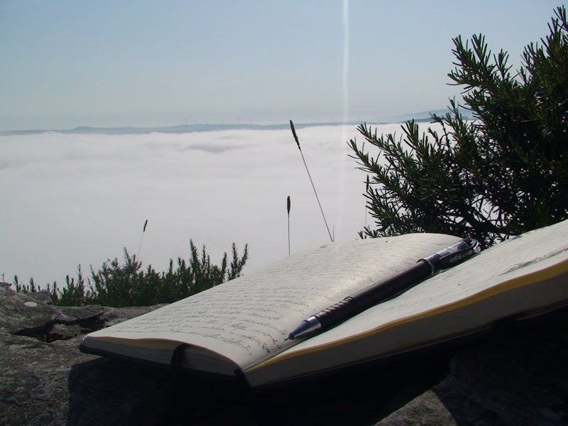 Era um homem idoso, as pernas arqueadas pelo peso do tempo, as mão engelhadas com os sulcos da vida, a barriguita proeminente, a cara lisa e os olhos muito azuis por baixo da testa longa e do boné enterrado na cabeça. De vez em quando tirava-o para o recolocar, assim como quem ajeita um vício, e via-se o cabelo muito ralo e muito branco. Tinha uma mal-formação na face como se fosse um sulco aberto que secou sem cicatrizar. Começava na cana do nariz, abria caminho por entre os sobrolhos e acabava-lhe no meio da testa. Era uma ferida feia se fosse uma ferida. Sendo uma marca de nascença não ficava mais bonita por isso. Entrou no comboio, sentou-se de frente para mim, abriu as pernas, pousou as mãos na bengala e disse-me: