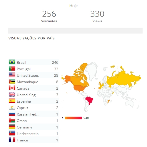 3) A diversidade geográfica de leitores é entusiasmante. Leitores de treze países diferentes! Oman? Liechtenstein? Quem serão as almas que nos lêem nesses cantos do mundo? E demoraram-se…
